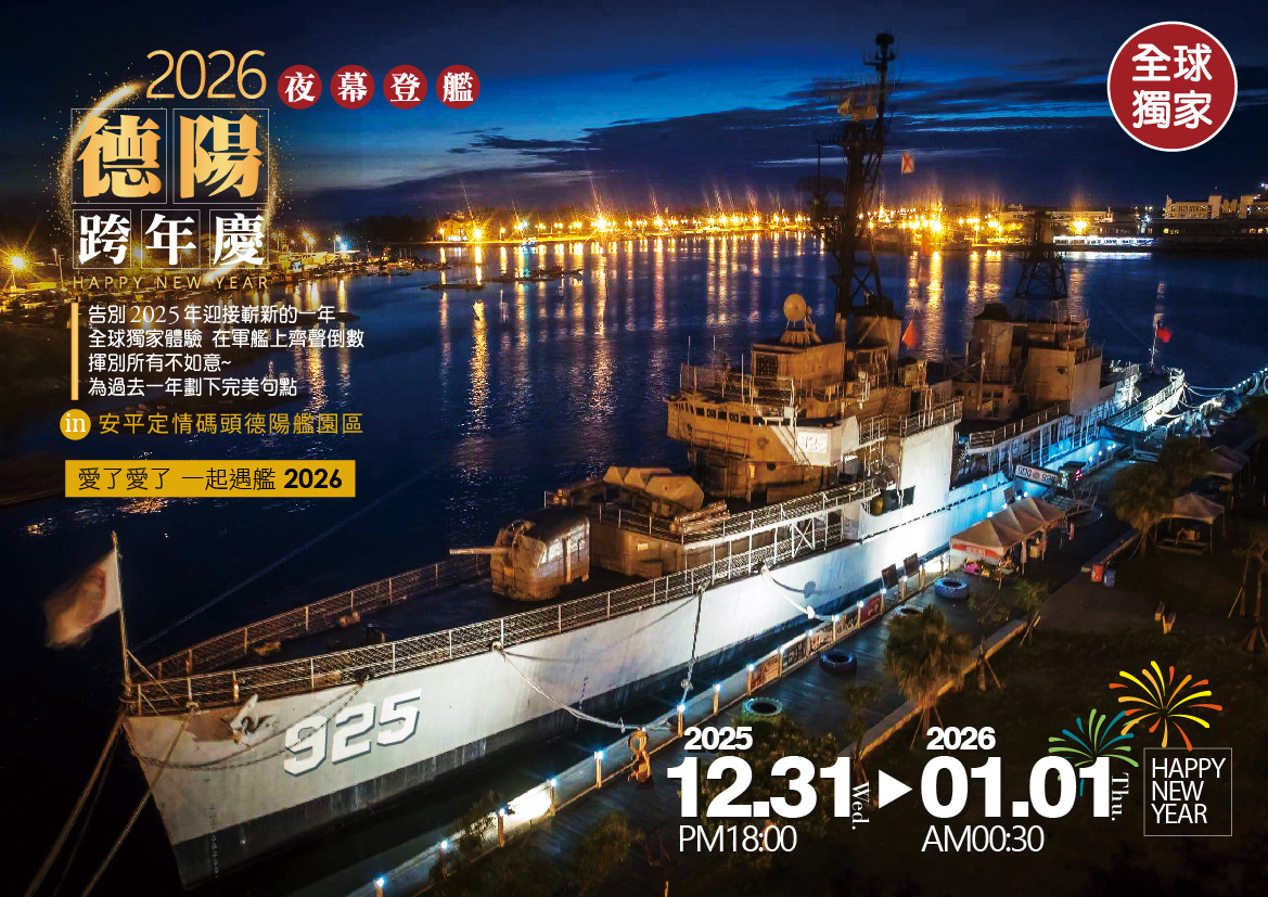 夜幕登艦-一起遇艦2026 告別2025迎接嶄新的一年 全球獨家體驗軍艦上齊聲倒數 為過去一年劃下完美句點~ 狂歡到2026